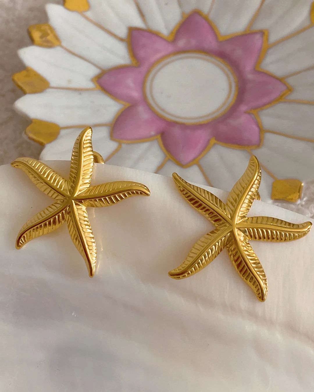 Bring the allure of the ocean to your look with The Seashore Studs. These captivating earrings feature a large, dimensional starfish motif with beautifully defined, textured arms. The detailed grooves across the surface give them a realistic, contoured feel and an elevated look.