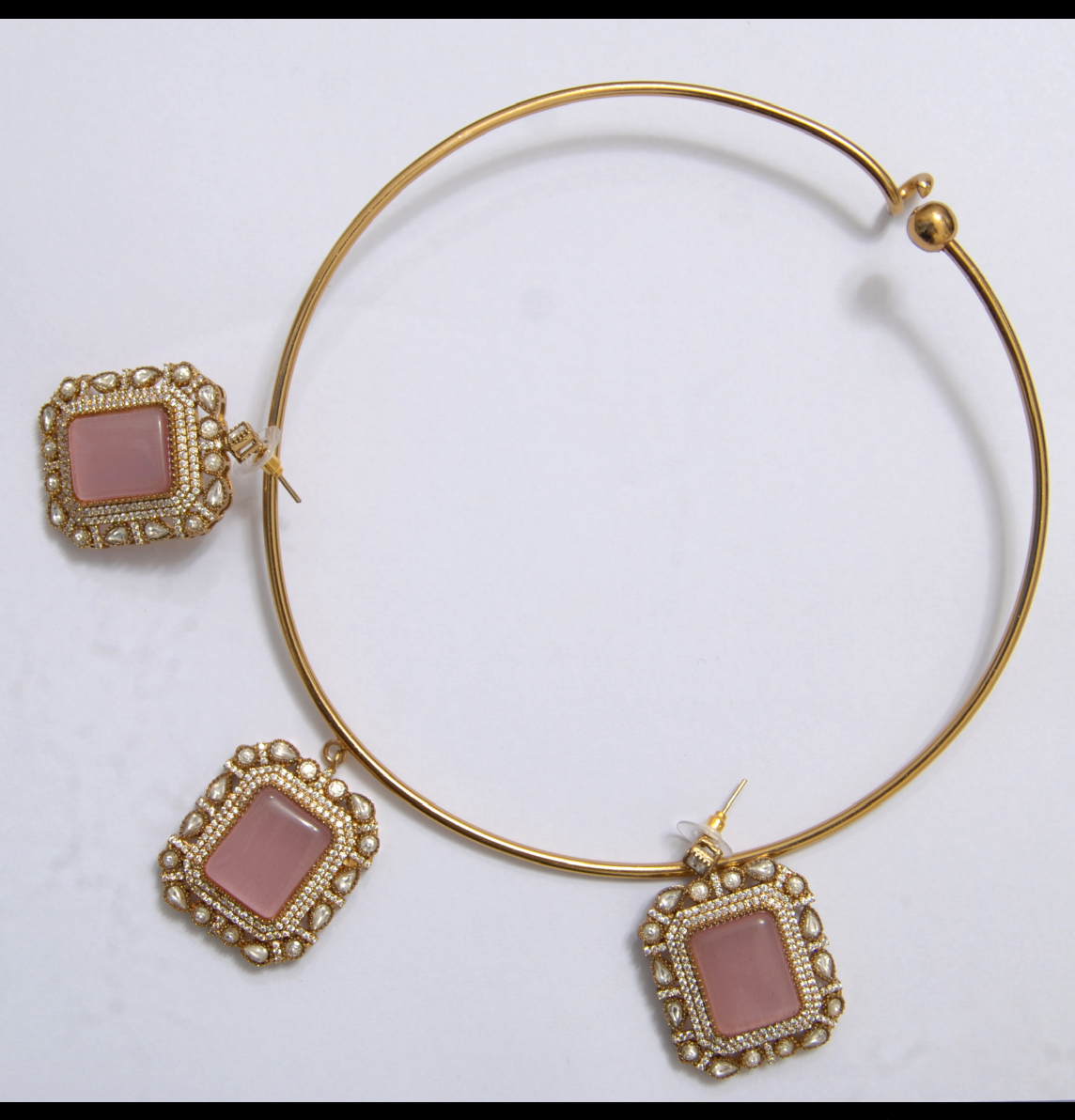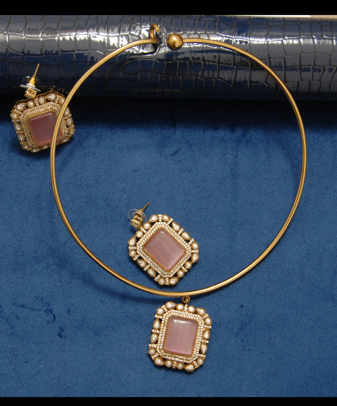 Be the first to review “Elegant Dual-Tone Stone-Studded Necklace & Earrings Set”
